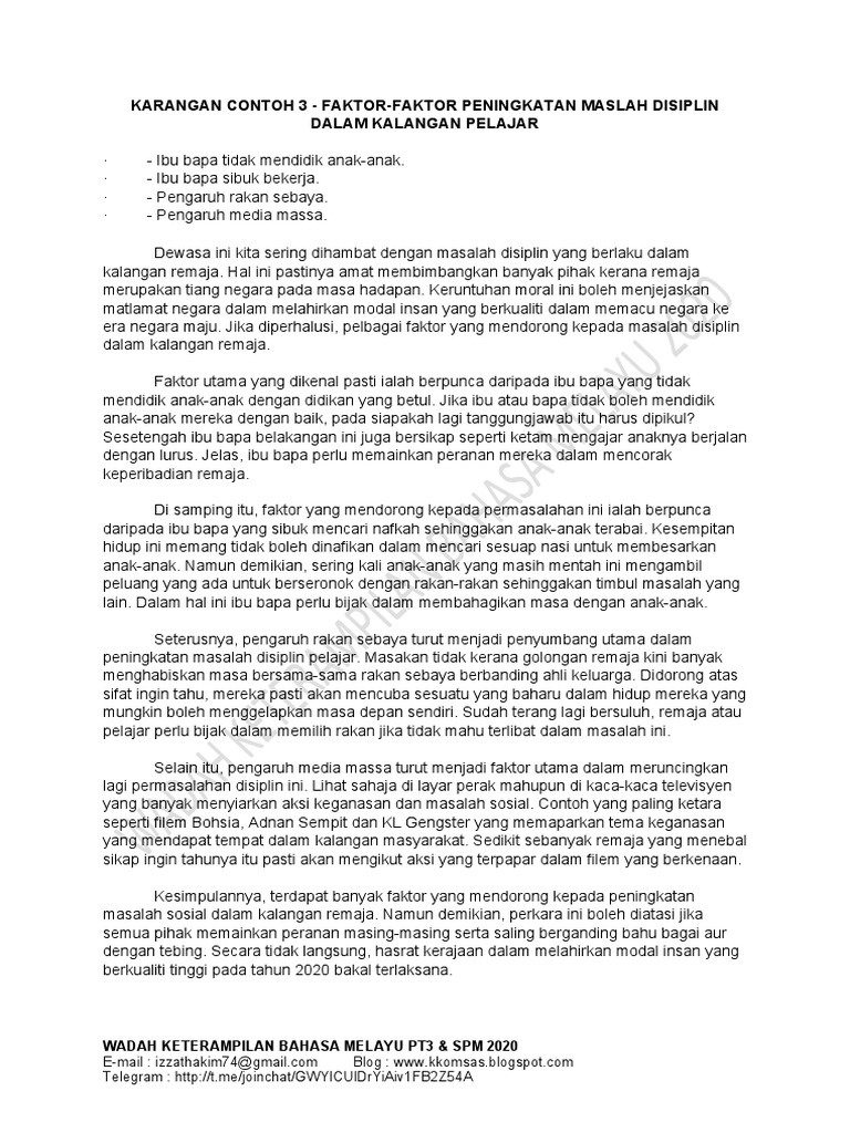 Contoh Contoh Karangan Tentang Faktorpeningkatan Masalah Disiplin
